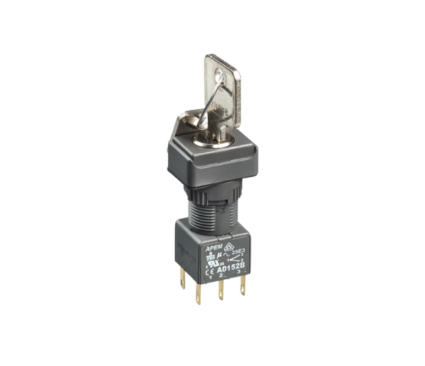 A range of 16mm panel mounting key switches and selector switches- available latching and momentary with custom engraved actuators- over moulded key and many accessories.